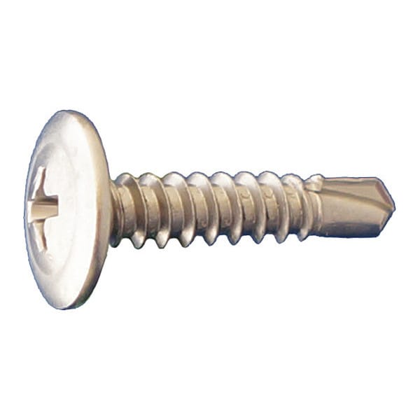 Self-Drilling Screw, #8 x 1 in, Plain 410 Stainless Steel Truss Head Phillips Drive, 5000 PK