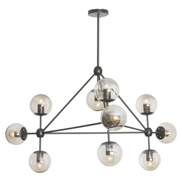 10 Light Triangular Chandelier, Matte Black Finish, Cognac Glass
