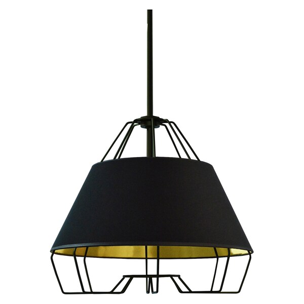1 Light Black Pendant With Black On Gold Hardback Shade