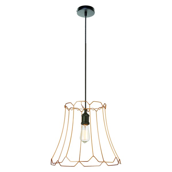 1 Light Metal Framed Pendant, Medium Gold Finish