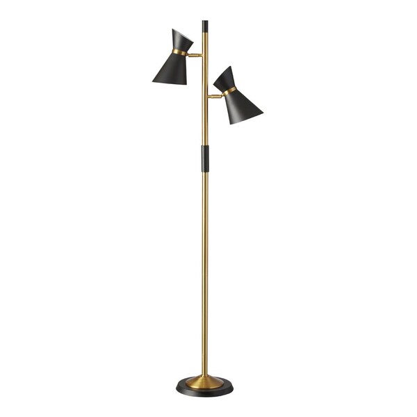 2 Light Floor Lamp, Black Shades, Vintage Bronze Base