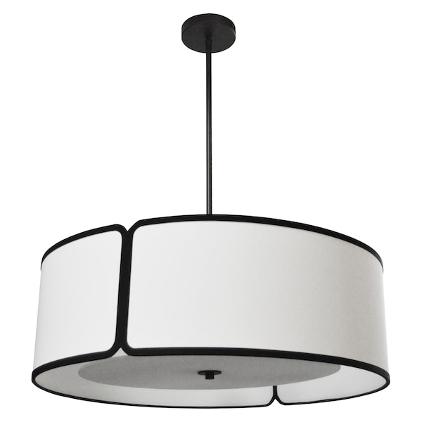 3Lt Notched Drum Pendant Bk, Wh Shade & Diffuser (Discontinued)