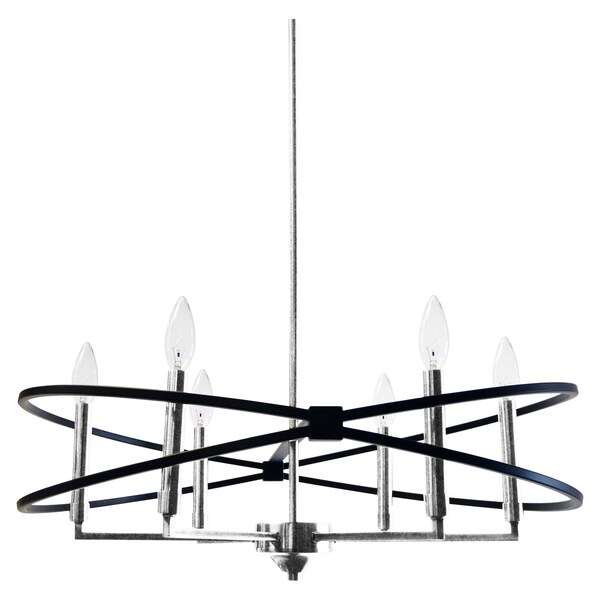 6 Light Incandescent Chandelier, Polished Chrome And Matte Black Finish