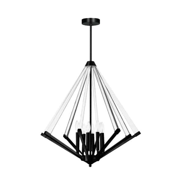 8 Light Incandescent Matte Black Chandelier W/ Clear Acrylic