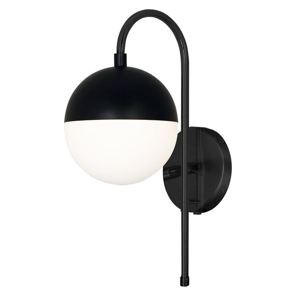 1 Light Halogen Wall Sconce, Matte Black Finish With White Glass