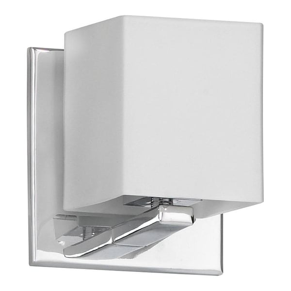 This One Light Bathroom Sconce has a Chrome Finish.