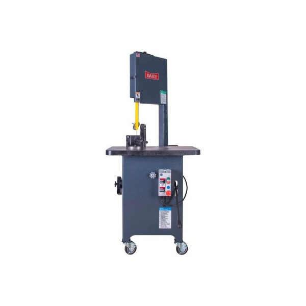 Dake 988040-1 sxc gravity feed, 9x14 1/2" capacity, 110-1 parma vertical bandsaw - sxc great for production and model shops. features: gravity feed. The blade feeds into the material by gravity, which allows for hands-free operation frame and base are heavy duty welded steel for rigidity. Built to handle the toughest environments fast set up. Effortless changes between a cut off saw, contour saw and rip saw. Fast set up makes it ideal for production variable feed rate system with hydraulic feed regulator that features a convenient front mounted flow control valve. Cut almost any metal or other hard material - four blade speeds and infinitely adjustable blade pressure. Hydraulic feed regulator protects against shortened blade life low voltage controls with thermal overload and e-stop for emergency stop and start situations enclosed guarding for step pulley and bottom wheel assembly includes: c-clamp assembly one standard blade
