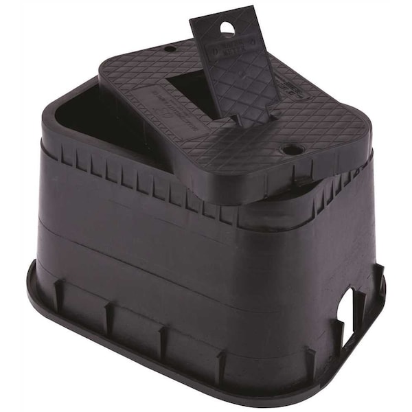 For burial of water line valves, sprinkler valves, water meters, etc. Black drop-in plastic reader lid cover with snap-lock tab. Hinged reading door lid is 4-1/2 in. x 7-1/2 in. The Box is 12 in. Deep x 15-1/2 in. Wide x 21 in. long at base. A Pipe slot on each end of box.12 in. rectangular12 in. tall15-1/2 in. long top opening10-1/4 in. wide top opening19-3/8 in. x 14-5/8 in. bottom measurementsCovers cut off valvesCovers water meterSide slot on each end of boxFlush fit reader lidLockable lid