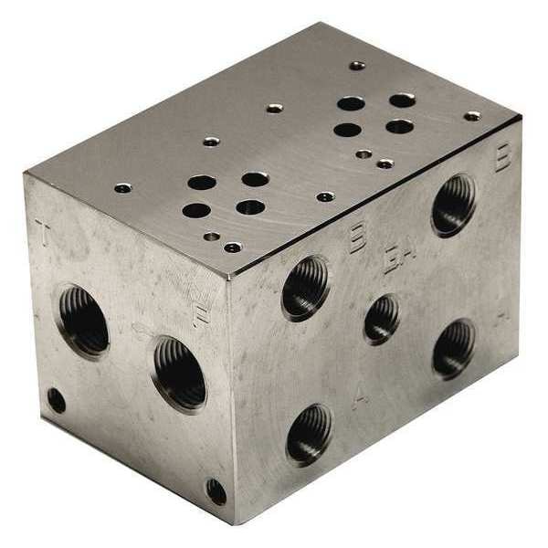 Manifold, Body Material Aluminum, Overall Height 3 in, Overall Length 4.25 in, NFPA Size D03, Overall Width 3 in, Pressure - Maximum 3,000 psi, Port Connection Gender Female, Port Connection Size 1/2 in, Port Connection Type NPT, Mounting Hole Size 0.31 in, Operating Temperature - Maximum 150 Degrees F, Series DO3