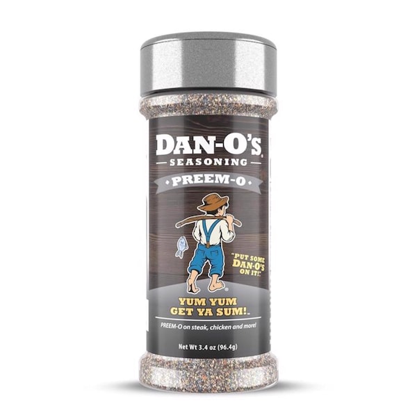 Whether you're grilling roasting smoking sauteing searing or just doing your own kind of you-ing Dan-O's Preem-O will help take your grill game from the cheap seats to luxury suites. This rich and savory blend of top-shelf spices and herbs black garlic bite and the perfect dash of black sea salt will have you and your friends' tastebuds bowing down at the feet of a new grilling royalty. That would be you. You king or queen of the grill marks.