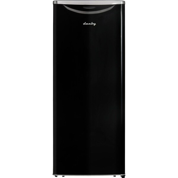 Drawing inspiration from mid-century styling and simplicity, danby's patented contemporary classic refrigerators reimagine retro for the modern consumer. The contemporary classic all fridge features danby's exclusive retro-inspired curved door design, black metallic door and chassis finish, rubber-grip ergonomic chrome handle, stylized chrome worktop, and a signature all-black interior. Boasting 11 cubic feet 311 l of storage and cooling space, this all-fridge model is ideal for condos, apartments, or townhouses. Cut down on clutter with three chrome-trimmed tempered glass shelves, five integrated door shelves, and tall bottle storage for maximum storage versatility. Reduce your electricity bill and save on energy with this energy star rated model. Easily find your eggs, vegetables, or fruit with the bright interior lighting system. Store your groceries in the glass-covered vegetable crisper, and the mechanical thermostat is conveniently located for easy temperature control. Maintenance and cleaning are as simple as can be with the automatic defrost system. Lastly, this stylish appliance features a clever, reversible hinge that allows you to set it for right or left-handed opening. features: 11.0 cu. Ft. 311 l capacity all refrigerator energy star complaint, energy-efficient to help you save money without sacrificing performance midnight metallic black finish with chrome trim all black interior 3 full-width adjustable glass shelves with chrome trim for maximum storage versatility 5 integrated door shelves including tall bottle storage see-through crisper and cover set and forget thermostat bright white led interior light reversible door hinge 12-month warranty on parts and labor with in-home service
