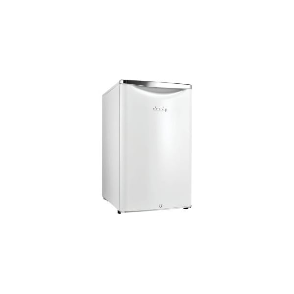 Drawing inspiration from mid-century styling and simplicity, danby's patented contemporary refrigerators reimagine retro for the modern consumer. The contemporary classic compact features danby's exclusive retro-inspired curved door design, metallic door finish, rubber-grip ergonomic chrome handle, and stylized chrome worktop. Its signature interior only outmatches the exterior features. Boasting 4.4 cubic feet 125 l of storage and cooling space, it features two and a half-tempered glass shelves for maximum storage versatility and a vegetable crisper with a glass top. There's more than enough room for larger bottles, and the spacious unit helps keep electricity bills in check with its energy star rating and state-of-the-art mechanical thermostat. Maintenance and cleaning are simple with the automatic defrost system. It also includes an efficient canstor beverage dispenser and bright white interior led light. This small refrigerator also features a clever, reversible door hinge that enables you to adjust it for a left or right-handed opening. features: 4.4 cu. Ft. 125 l capacity compact all refrigerator featuring danby's patented design energy star compliant environmentally friendly r600a refrigerant metallic door finish with a rubber-grip chrome ergonomic door handle black interior integrated door shelving with tall bottle storage and a canstor beverage dispensing system vegetable crisper and cover glass shelves interior white led light scratch-resistant worktop reversible door hinge door lock automatic defrost smooth back design 12 months parts and labor coverage