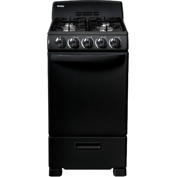 You don't need to be a world-class chef to enjoy cooking with this ultra-compact gas range by danby. This attractive model may only be 20-inches wide, but it comes with everything you need for fine dining. This includes an oven and four burners. This trendy appliance provides 2.3 cubic feet of oven space making it ideal for small-space living such as apartments and cottages. It boasts an easy-to-clean pyrolytic blue oven interior for easy clean up. The oven dishes out a powerful 13,000 btu of baking power. This dependable gas range comes with an angular control panel with push-and-turn front knobs for added safety and includes two oven racks with four adjustable positions and safety stops for optimal cooking. This range is ada compliant and offers a 12-month warranty on parts and labor with convenient in-home service. features: compact solution for small space living: 20in free standing gas range with a large 2.3 cu. Ft. Oven capacity manual, easy to clean pyrolytic blue oven ada compliant: meets requirements set out by standards for accessible design for people with disabilities new sealed burners: 12,000/9,500/5,000/9,500 btu powerful 13,000 btu for maximum baking power in drawer broiler drawer: drop down door and front pocket flexibility: two oven racks with four adjustable positions and safety stops for optimal cooking