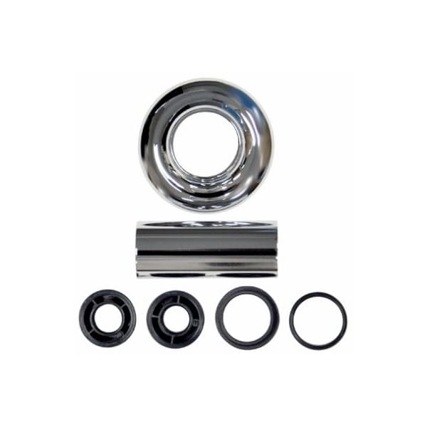 Universal, Chrome, Tub Shower Flange Set, Includes One 3 Length Tube x 112 OD One 3 OD x 112 ID x 34 Thick Flange 4 Adapters To Cover The Faucets Working Mechanism Including The Stem Or Cartridge