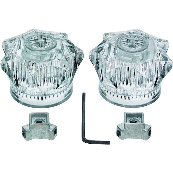 If your faucet handles have seen better days, you can bring your faucet back to life by replacing the handles And, if you aren't sure what kind of faucet you have, universal fit handles are the answer because they work with any faucet These Danco clear handles are constructed of metal which will provide strength and durability The handle includes adapters, spacers and wrench