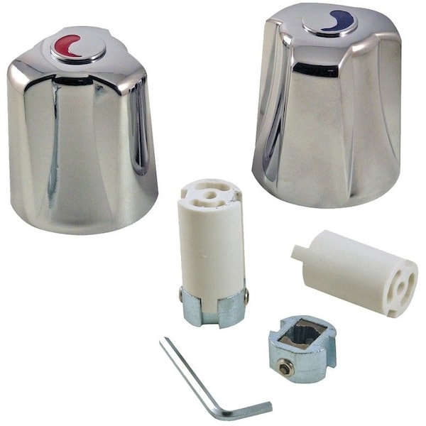 Give your faucet a new look by upgrading and replacing your older existing faucet handles Replacing your handles is an easy and economical alternative to replacing the entire faucet These new Danco canopy faucet handles will return your faucet to like new condition These handles feature a metal construction that will provide strength and durability during the rigorous activities of everyday life Included are universal adapters and spacers to fit most tub and shower faucets which will provide and easy and stressfree DIY installation