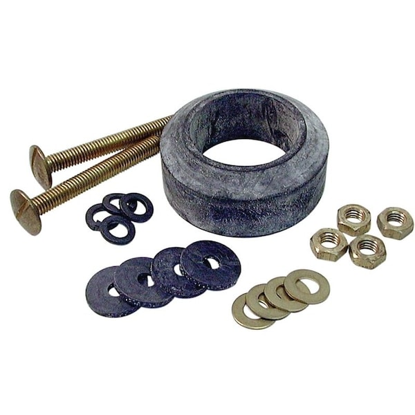 Replace worn tank-to-bowl bolts and gaskets with this Danco kit, it is complete and ready to go. It includes durable tank bolts and a sponge rubber spud gasket. Installing new parts will keep the toilet tank solidly attached and prevent leaks between the tank and the bowl.