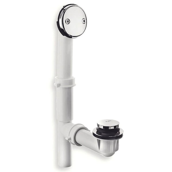 The Danco chrome tub drain kit is a complete bath drain kit for most standard tubs. It features 1-1/2 in plastic tubing that provides durability for a long product life. The kit includes all of the necessary parts to replace an existing drain or add a new tub. The drain trim has a touch-toe style with a polished chrome finish that will match existing faucet finishes.