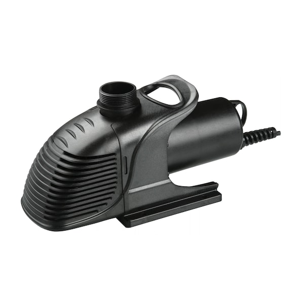 2500 GPH Hy-Drive pump. Powerfull efficient hybrid magnetic induction motor. High-Efficiency Vortex Impeller. Oil free/fish safe. Submersible or in-line operation. Ideal for use in in larger ponds and waterfalls. Threaded female couplings and fittings and pump bag included. 20' ground power cord.