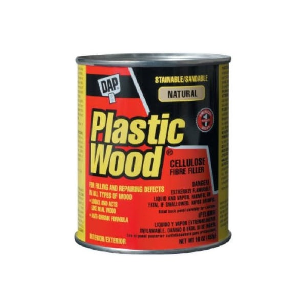 Plastic Wood, 16 OZ, Natural Color, Cellulose Fibre Wood Filler, High Performance, Solvent Based Wood Filler That Hardens To Give A Surface Body That Looks Acts Like Real Wood, Can Be Sanded, Stained, Cut, Drilled, Planed, Varnished, Painted Or Lacquered, Repairs Cracks, Gouges Scratches In Wood, Ideal For Large Deep Holes, Interior Exterior Use, Meets Federal Spec TTF340C, NOTE DOT Hazardous Material Regulations Require Shipping Plastic Wood In Full Case Original Cartons