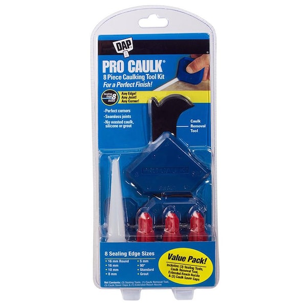 The PRO Caulk 8 Piece Caulking Tool Kit helps you caulk like a pro in seconds! Create a perfect looking seal, on any edge, joint or corner, every time while reducing wasted caulk and sealant. The tools are easy to clean and can be used time and time again. Use them indoors or out on just about every caulking and sealing project.
