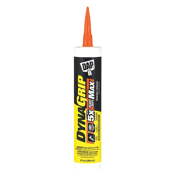 Construction Adhesive, Adhesive Color White, Application Method Dispensing Gun, Chemical Base Acrylic Latex, Container Size 9 fl oz, Container Type Cartridge, Features Multi-Material, Weatherproof, Interior/Exterior Interior/Exterior, Working Time 10 min, VOC Content Weight Percentage 0.5 Percent, Water Resistance Not Water-Resistant, VOC Content Weight 12 g/L, Standards ASTM D3498, ASTM C557, VOC Compliant, Low Odor Yes