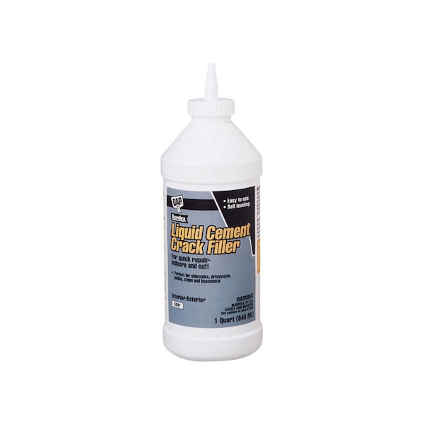 DAP Liquid Cement Crack Filler is an easy-to-use, ready mixed product for the repair of horizontal concrete cracks. Repairs are ready for traffic 30-45 minutes following application, when directions are properly followed. Liquid Cement is self-leveling and dries gray to match most existing concrete. Note: Fills cracks up to 1/2” in width. For cracks greater than 1/2” in width, use DAP Ready-Mixed or Dry Mix Concrete Patch.