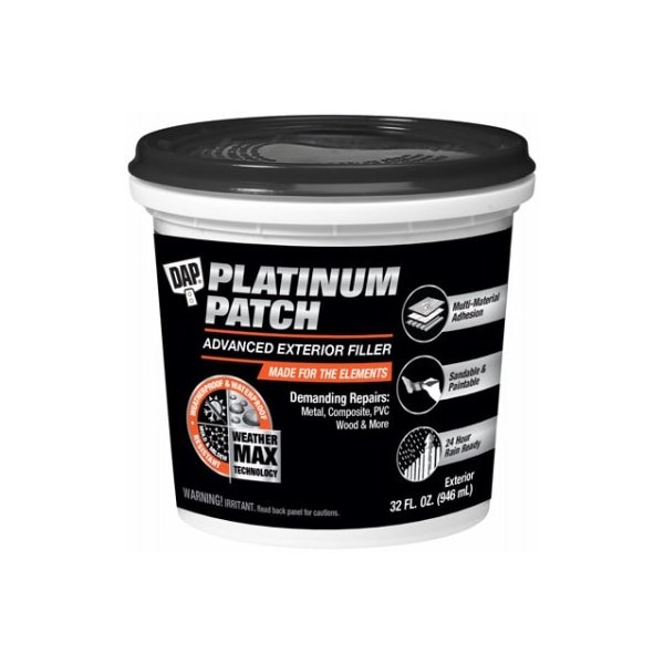 Dap Platinum Patch, 32 OZ, Advanced Exterior Filler, Formulated For The Most Demanding Exterior Home Repairs With Superior MultiMaterial Adhesion To The Most Common Building Materials, Formulated With Advanced Weathermax Technology, Providing Exceptional Weatherproof Capabilities UV Protection To Prevent Color Fading, Discoloration, Cracking, Crumbling Or Other Damage That Could Be Caused From Harsh Weather, Easy To Apply, Sandable Paintable Low In Odor, Ideal For Filling Holes, Cracks, Crevices, Dents Or Defects On Surfaces Such As Metal, Composite, PVC, Fiber Cement, Wood, Mortar, Concrete, Vinyl, Brick, Stucco, Plaster, Drywall More