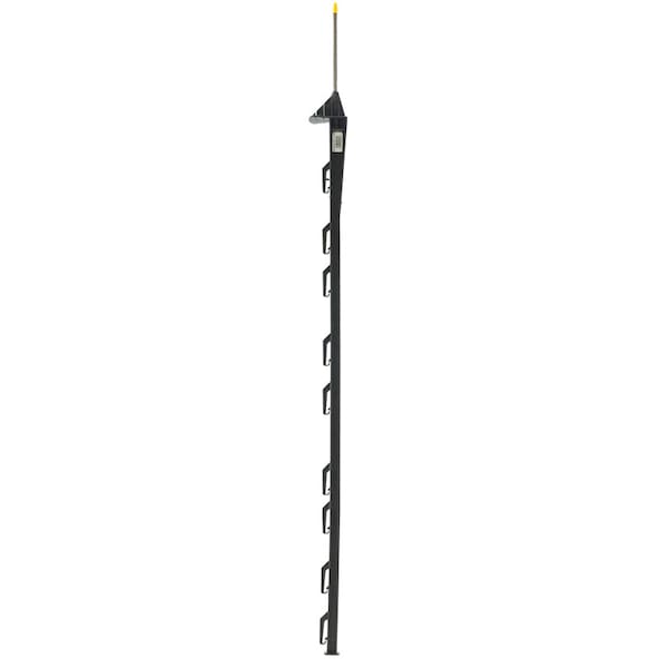 Ideal for temporary electric fencing such as controlled grazing/pasture management. Strong H section post molded of UV resistant polypropylene. Eight wire holders for steel wire, poly wire and poly tape up to 1-1/2 inch wide.
