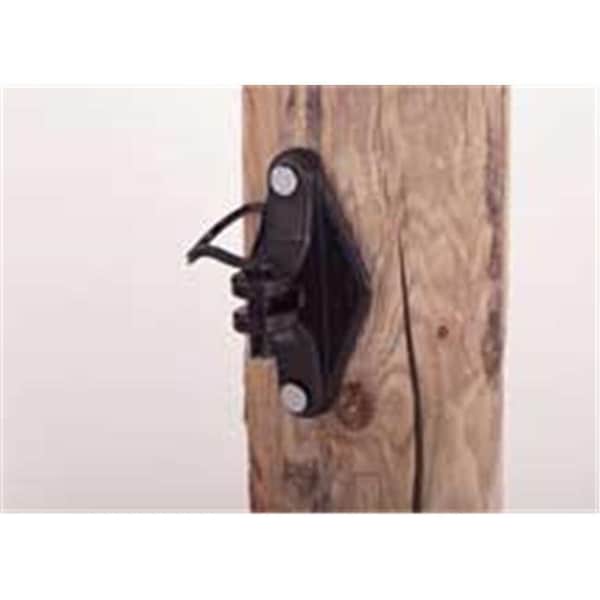 Heavy cross sections stand the pressure of high tensile fencing.Large flange prevents shorts and arcing.Locks and unlocks fence wire.High density polyethylene with carbon black for superior uv resistance. Complete with galvanized ring shank nails.Dimensions (L x W x H):1 x 1 x 1