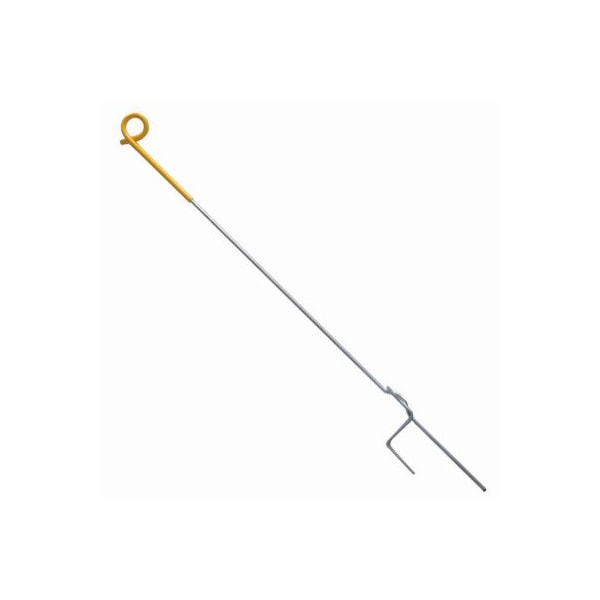 42 in overall, 35 in above ground Ideal for temporary electric fencing for grazing and pasture management Heavy duty 932 in galvanized steel rod Use with all types of wire, rope, or polytape Steps easily into hard ground with sharp reinforced stepin plate Top piece molded with UV inhibitors and is rated to 30,000 volts Individually barcoded Yellow top