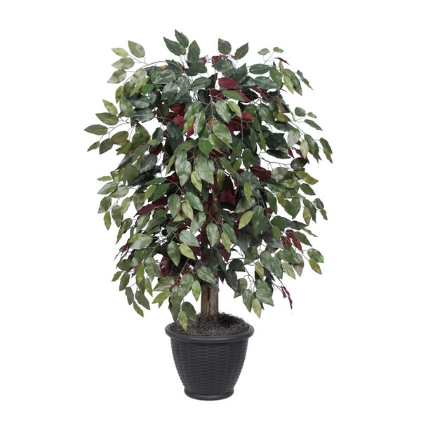 4 ft. Artificial Capensia Bush in Gray Plastic Pot, Green & Red