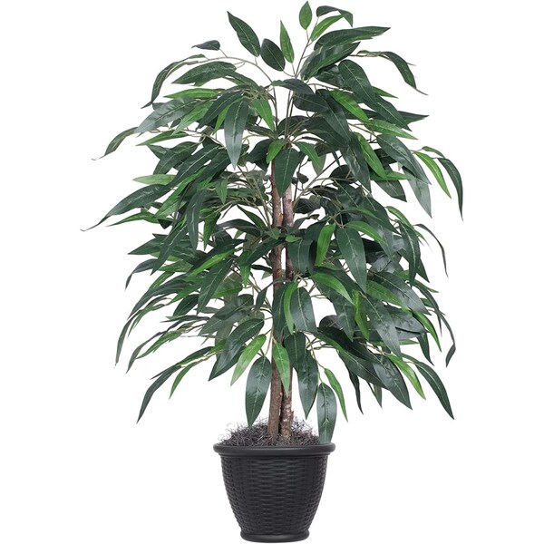 4 ft. Mango Bush Artificial-Plants in Grey Plastic Pot, Green
