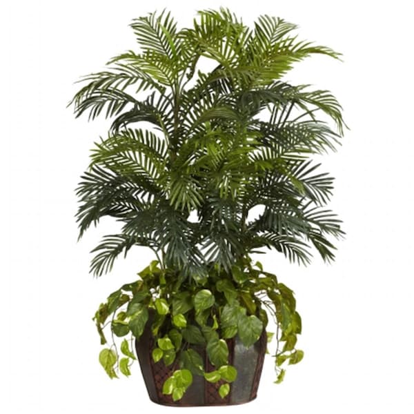 4.5 in. Double Areca with Vase and Pothos Silk Plant