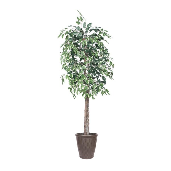 6 ft. Variegated Ficus Tree Round Brown Container Decorative Plant, Green & White