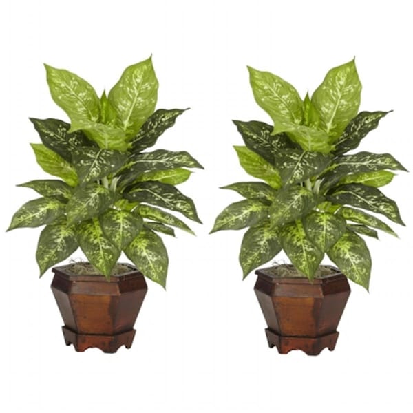 Dieffenbachia with Wood Vase Silk Plant, PK2