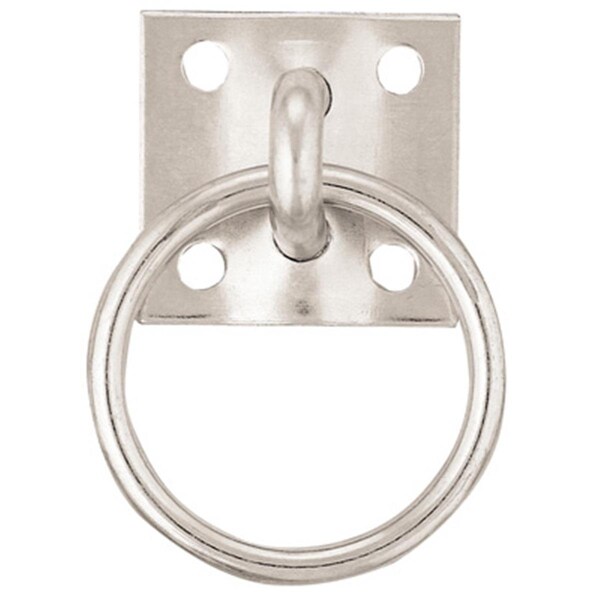 Features -Zinc Plated Over Steel -#52 Tie Ring Plate. -Size - 1-3/4 x 1-7/8 in. -Dimension - 2 x 2 x 3 in. -Item Weight - 0.21 lbs.