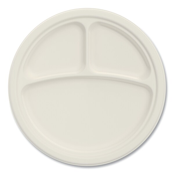 Bare Eco-Forward Sugarcane Dinnerware, 3-Compartment Plate, 10" dia, Ivory, 500PK (Discontinued)