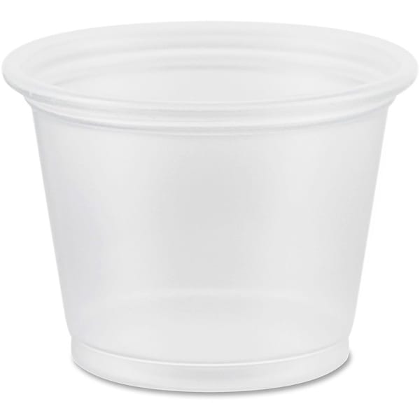 Container provides the perfect portion for any purpose. Durable, crack-resistant polypropylene allows diverse use in today's foodservice market. Unique construction makes an audible click to signal a secure lid seal. Compact size is perfect for serving or transporting foods such as sauces, salad dressing, whipped butter and more. Container is designed for use with Dart 100PCL25 lids (sold separately).