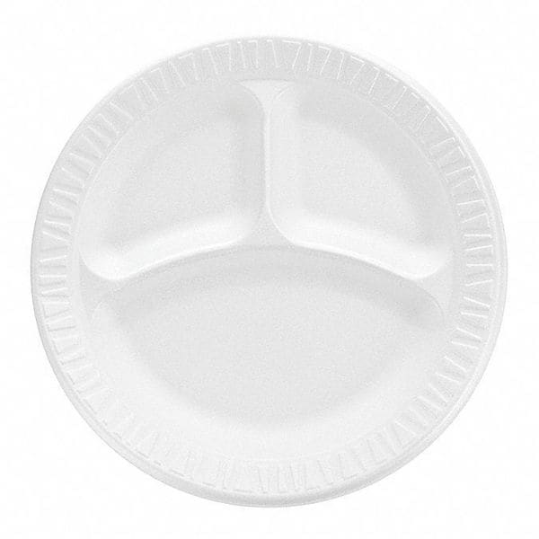 Disposable Foam Plate, Bio-Based Yes, BPI Certified No, Coating/Lining Uncoated/Unlined, Color White, Compostable Not Compostable, Diameter 9 in, Disposable Plate Size 9 in, FSC Certified No, Length Not Applicable, Material Foam, Microwave Safe No, Number of Compartments 3, Pack Count 125, Packs per Case 4, Pattern Patternless, Plate Type Dinner Plate, Recyclable Yes, SFI Certified No, Shape Round, Standards Not Applicable, USDA Certified Bio-based Products No, Width 9 in