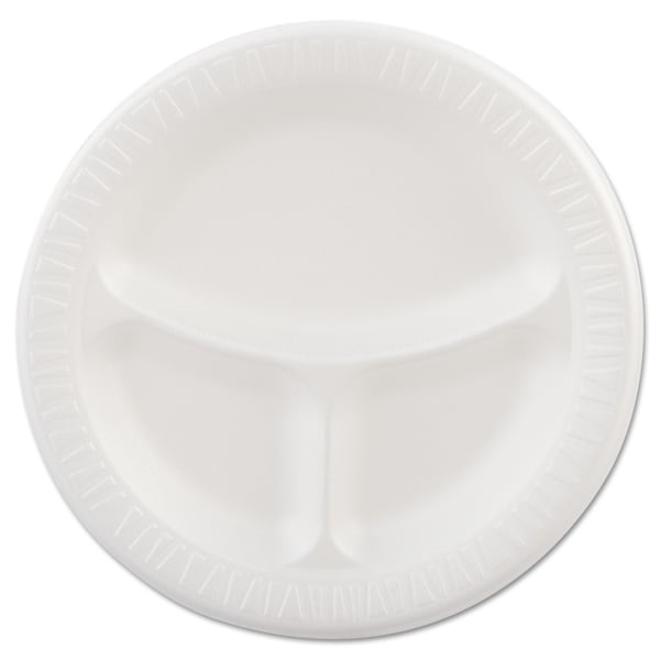 Laminated Foam Plates, 9" dia, White, Round, 3 Compartments, PK500