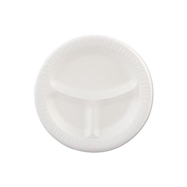 , Laminated Foam Plates, 9in Dia, White, Round, 3 Compartments, 125/pk, 4 Pks/ct (Discontinued)