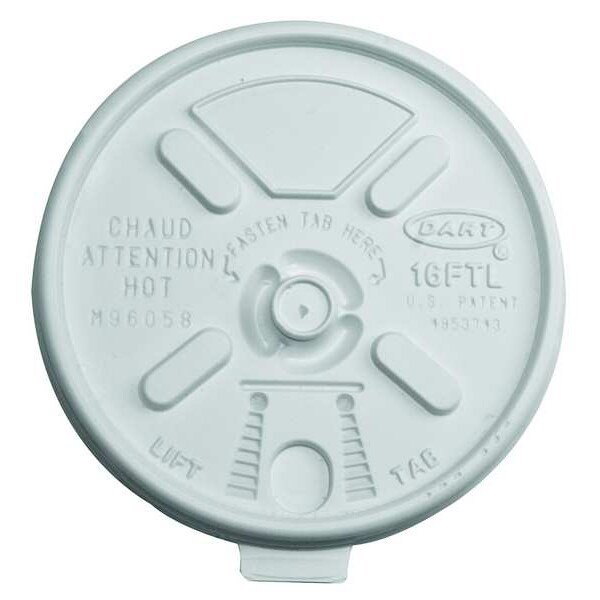 Lid for 12 to 24 oz. Hot Cup, Flat, Lock Back Tear Tab, White, Pk1000 (Discontinued)