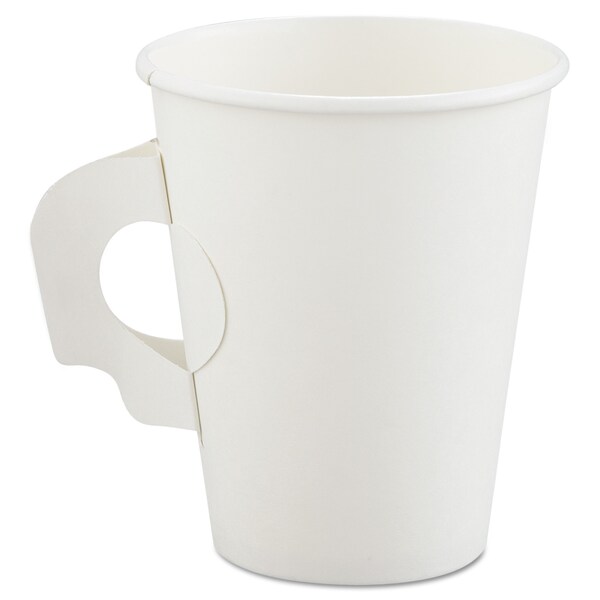 Polycoated Hot Paper Cups with Handles, 8 oz, White, PK1000 (Discontinued)