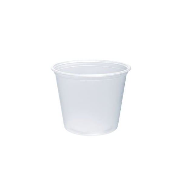 This clear plastic portion container has a 5.5 oz capacity and features a wide-mouth design for easy filling and dipping of warm sauces like nacho cheese and marinara. Made from durable plastic, it supports both hot and cold foods, helping to keep counters clean and organized with its easy stacking capability. The container pairs with multiple compatible clear lids that snap on for secure storage and convenient grab-and-go use. Ideal for busy venues, hospitals, and restaurants, this pack of 2500 offers a practical solution for portion control and mess prevention.