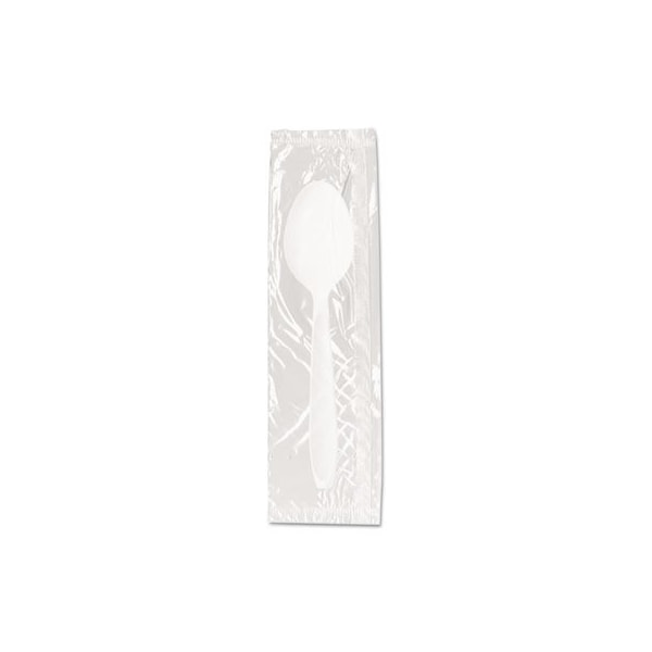 Elegant disposable cutlery may easily be used for special gatherings, casual dining or takeout/delivery. Optimized strength-to-weight ratio helps provide superior performance. Pieces feature an ergonomic grip. Individually Wrapped. Utensils Type: Teaspoon; Materials: PS - Polystyrene; Colors: White; Grade: Mediumweight.