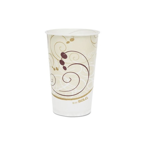 Add some panache to beverage service with the Symphony swirl design. Treated paper cups feature a wax-coating for superior rigidity as compared to poly-coated alternatives. Better for frozen drinks, wax-coated paper accommodates milkshakes, smoothies, shaved ice and more. It's easy to find a size for every occasion, every application. And, you can be sure to find a lid to match lids sold separately. Cup Type: Cold; Capacity Volume: 16 oz; Materials: Wax-Coated Paper; Colors: White/Beige/Red.