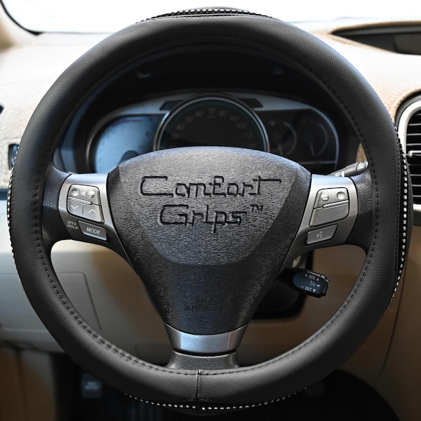 Add some genuine bling to the interior of any vehicle with a Comfort Grips Gem Grip steering wheel cover. em Grips will protect the steering wheel, enhance your vehicles interior and provide a comfortable, stylish driving experience. Wrap your hands around a cool looking Gem Grips cover and put some glitter in your life.