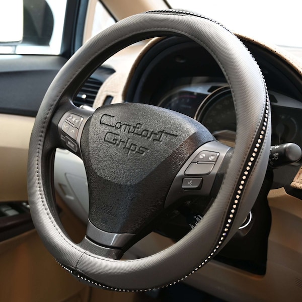 Add some genuine bling to the interior of any vehicle with a Comfort Grips Gem Grip steering wheel cover. em Grips will protect the steering wheel, enhance your vehicles interior and provide a comfortable, stylish driving experience. Wrap your hands around a cool looking Gem Grips cover and put some glitter in your life.
