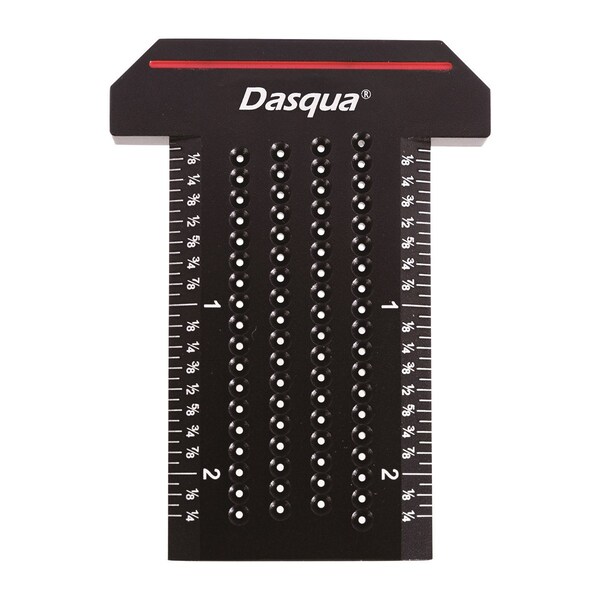 Dasqua Pocket Marking T-Shaped Ruler High quality durable and rust-resistant aluminum alloy. The marking rule helps to mark precise, straight and parallel lines as needed. The holes are the perfect size to use with the included mechanical pencil for drawing different parallel lines. Precision marking rule with 5mm hole distance and 1mm hole size.